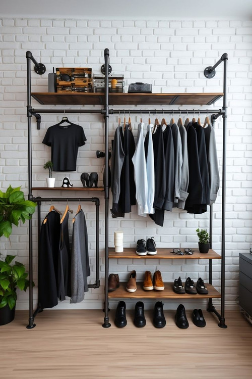 رگال فلزی با طبقات چوبی رنگ مشکی مناسب لباس کد207