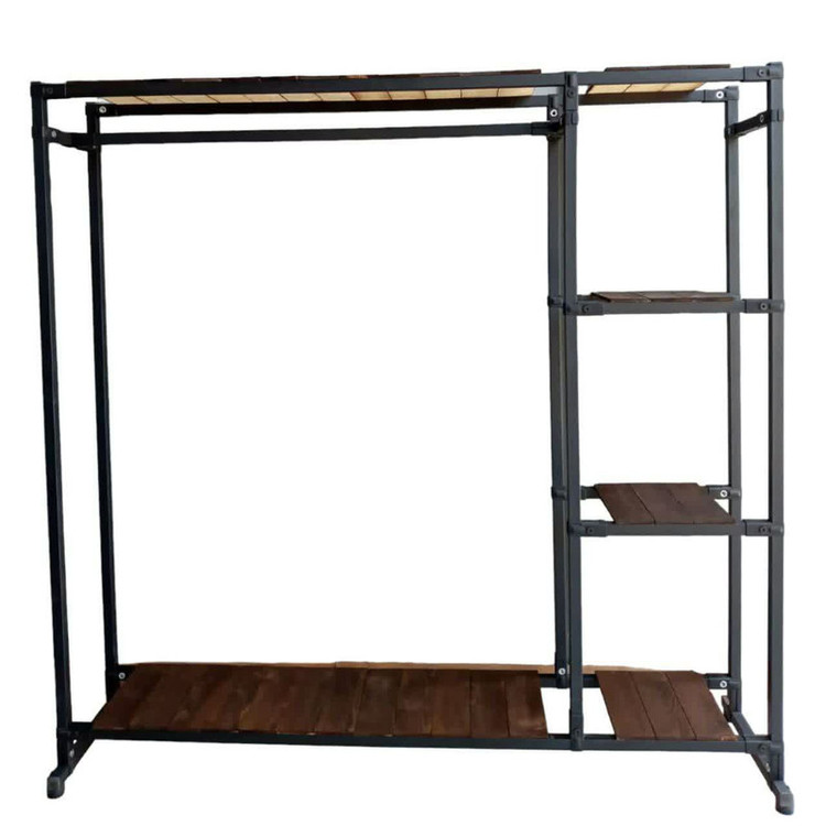جنس بدنه: چوب روس و پروفیل ضخیم (فلز) جنس طبقات : ترمو وود جنس لباس آویز: پروفیل با ضخامت 0/6 جنس بست : فلز ضخیم با آبکاری ابعاد: 160x160 تعداد طبقات : 3 طبقه