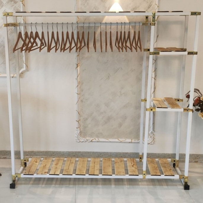 رگال آویز دار قابل حمل بسیار کاربردی برای افراد مستاجر یا مغازه دار یا افرادی که تمایل به تخریب دیوار ندارند به همراه طبقات دکوری که این کالا بسیار شیک کرده است در 2 رنگ مشکی و سفید طلایی قابل سفارش است