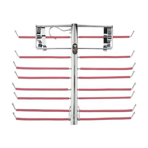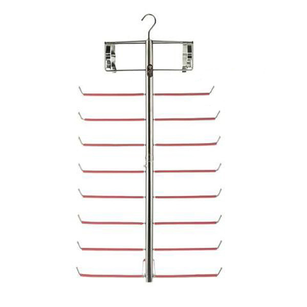 یکی از معضلاتی که همواره خانمها با آن روبرو هستند. نگهداری شال و روسری در فضای مناسب بدون چروک شدن و اشغال فضای زیاد است .برای اولین بار در ایران، شال آویز تولید شده برای استفاده بهینه از فضای پشت در کمد لباس شما نموده است، روسری آویز از مقاومت بالایی برخوردار است و از 100% فلز ساخته شده است و این مدل قابل نصب بر روی درب کمد و داخل کمد و دارای گیره های مخصوص دربهای لبه دار و MDF می باشد و دارای دو گیره می باشد و قلاب های کوتاه برای درب های MDF با ضخامت 16 میلیمتر و قلاب های بلند برای درب های لبه دار با ضخامت 35 میلیمتر می باشند و باید روی لبه درب کمد از داخل قرار دهید و یکی دیگر از مزیت های این آویز این است که شما وقتی آویز بر روی درب نصب می کنید می توانید درب را ببندید و مزاحم بسته شدن درب نمی باشد.پایه نگهدارنده را چرخانده تا فاصله روسری آویز با درب یکسان شود.این آویز شال و روسری با داشتن 16 عدد فضا برای قرار گیری شال، از چروک و نخ کش شدن شال و روسری ما جلوگیری میکند؛ و ما به جای خرید 16 آویز، میتوانیم از این کالا استفاده کنیم که فضای کمتری را اشغال میکند. جنس آن از 100 درصد فلز برای مقاومت بالاتر است و به همین دلیل بدنه محکمی دارد و در ساخت این آویز برای اتصال ها از پرچ استفاده شده که مقاومت بالایی دارند.لاستیک هایی بر روی آویز ها وجود دارد که از سر خوردن شال یا روسری جلوگیری می کنند و قابل جابجایی هستند.این آویز دو تکه است و قلاب بالای آویز هم تاشو است برای موقعی که می خواهید پشت درب استفاده کنید و قلاب مزاحم نباشد قلاب تاشو گذاشته اند که به راحتی آن را جمع کنید و مزاحم درب نباشد و همپنین دو تکه درست شده تا هنگام جابجایی فضای کمتری اشغال کند و یا بتوانید بطور دو منظوره استفاده کنید.در پایین ترین قسمت آویز هم پشت آویز یک دسته قرار داده شده که می توانید آن را بسته یا باز کنید و برای فاصله داده البسه از درب استفاده می شود که بتوانید البسه خد را به راحتی و بدون مزاحمت درب بردارید.نصب آن های خیلی ساده است همانطور که در عکس مشاهده میکنید اهرام فلزی فشار داده و تکه دیگر را داخل تکه اول قرار دهید و بعد از آن اهرام را آزاد بنمایید.